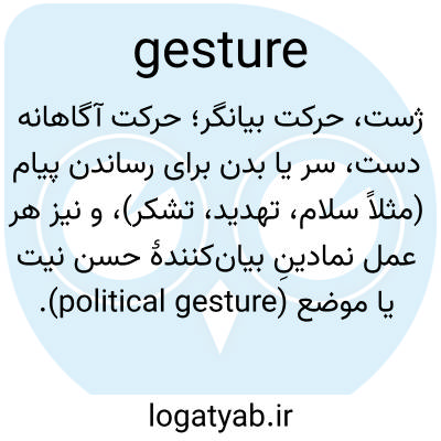 📌 حرکت یا حالتی از دست، بازو، بدن، سر یا صورت که بیانگر یک ایده، نظر، احساس و غیره است.