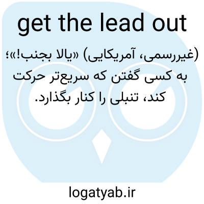 📌 همچنین،. عجله کنید، سریعتر حرکت کنید. برای مثال، بچهها، سرب را از شلوارتان بیرون بیاورید، وگرنه دیر میکنیم، یا حتی به صورت مجازیتر، آرتور کندترین فرد در صحبت کردن است - به نظر نمیرسد که بتواند سرب را بیرون بیاورد و منظورش را برساند. این عبارت نشان میدهد که سرب، سنگینترین فلز پایه، مانع از حرکت فرد میشود. [اصطلاح عامیانه؛ نیمه اول دهه 1900]