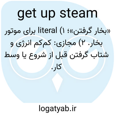 📌 برای سخت کار کردن آماده شوید، انرژی خود را جمع کنید. برای مثال، اگر بتوانیم بخار تولید کنیم، میتوانیم در کمترین زمان کار را تمام کنیم. این عبارت به تولید بخار کافی برای به کار انداختن یک موتور اشاره دارد. [اوایل دهه ۱۸۰۰] همچنین به عبارت «با سرعت کامل به پیش بروید» مراجعه کنید.