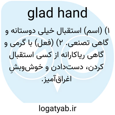 ۱) (اسم) استقبال خیلی دوستانه و گاهی تصنعی. ۲) (فعل) با گرمی و گاهی ریاکارانه از کسی استقبال کردن، دست‌دادن و خوش‌وبشِ اغراق‌آمیز.
