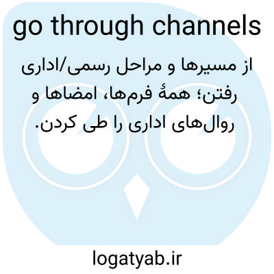 📌 از رویه صحیح، به ویژه در سلسله مراتب یا بوروکراسی، استفاده کنید. برای مثال، برای تأیید این هزینه باید از کانال‌هایی عبور کنید. این اصطلاح از کانال به معنای «مجرا» استفاده می‌کند. [اواسط دهه 1900]