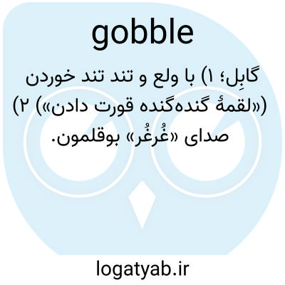گابِل؛ ۱) با ولع و تند تند خوردن («لقمۀ گنده‌گنده قورت دادن») ۲) صدای «غُرغُر» بوقلمون.