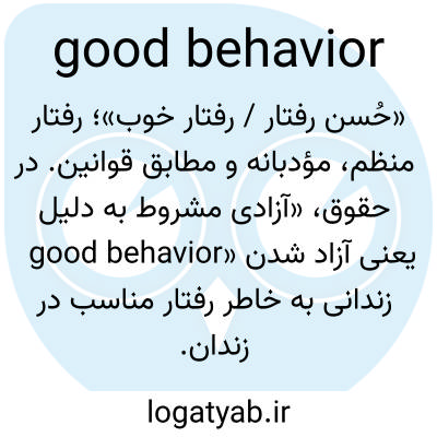 «حُسن رفتار / رفتار خوب»؛ رفتار منظم، مؤدبانه و مطابق قوانین. در حقوق، «آزادی مشروط به دلیل good behavior» یعنی آزاد شدن زندانی به خاطر رفتار مناسب در زندان.