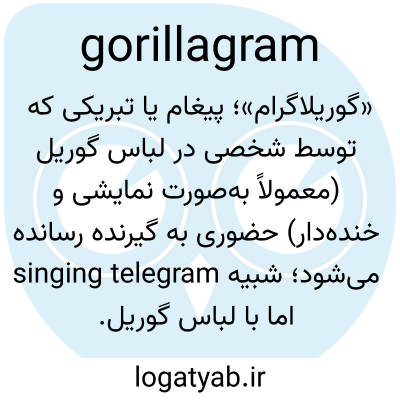 📌 غیررسمی، یک پیام تبریک طنزآمیز که توسط شخصی که لباس گوریل پوشیده است به کسی که تولد، نامزدی و غیره را جشن میگیرد، ارسال میشود