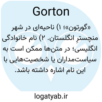 «گورتون»؛ ۱) ناحیه‌ای در شهر منچسترِ انگلستان. ۲) نام خانوادگی انگلیسی؛ در متن‌ها ممکن است به سیاست‌مداران یا شخصیت‌هایی با این نام اشاره داشته باشد.