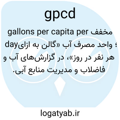 مخفف gallons per capita per day؛ واحد مصرف آب «گالن به ازای هر نفر در روز»، در گزارش‌های آب و فاضلاب و مدیریت منابع آبی.