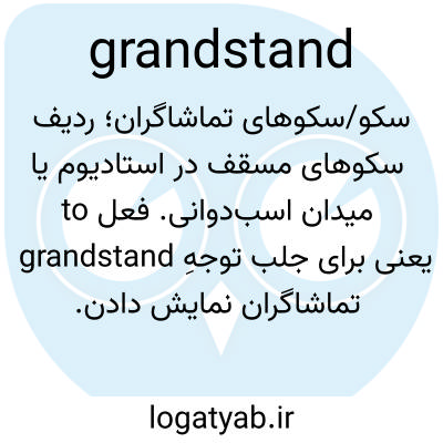 سکو/سکوهای تماشاگران؛ ردیف سکوهای مسقف در استادیوم یا میدان اسب‌دوانی. فعل to grandstand یعنی برای جلب توجهِ تماشاگران نمایش دادن.