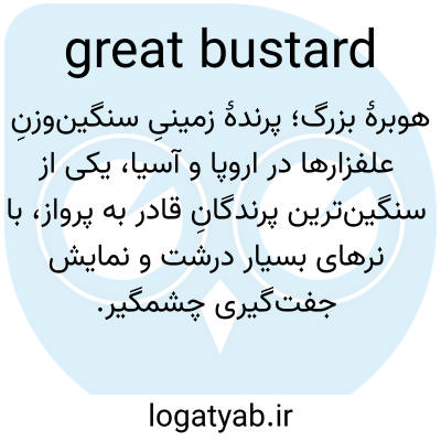 📌 نوعی هوبره بزرگ، Otis tarda، از جنوب و مرکز اروپا و غرب و مرکز آسیا، که پهنای بالهایش حدود ۲.۴ متر (۸ فوت) است.
