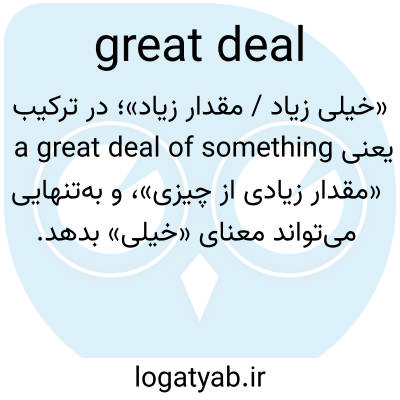 «خیلی زیاد / مقدار زیاد»؛ در ترکیب a great deal of something یعنی «مقدار زیادی از چیزی»، و به‌تنهایی می‌تواند معنای «خیلی» بدهد.