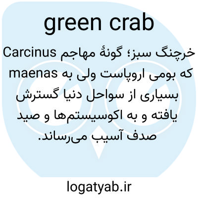 📌 خرچنگی زرد-سبز با نام علمی Carcinides maenas که در آب‌های کم‌عمق در امتداد سواحل صخره‌ای رایج است.