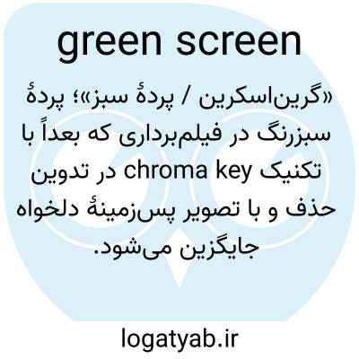 📌 یک سیستم جلوههای ویژه الکترونیکی، که معمولاً در بخشهای پیشبینی آب و هوای تلویزیونی استفاده میشود، که یک پسزمینه سبز ساده و ثابت را از نمای پیشزمینه زنده جدا و حذف میکند، به طوری که پسزمینه را میتوان با تصویر یا ویدیوی دیگری در ترکیبی با پیشزمینه پر یا جایگزین کرد.