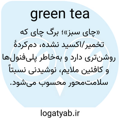 «چای سبز»؛ برگ چای که تخمیر/اکسید نشده، دم‌کردهٔ روشن‌تری دارد و به‌خاطر پلی‌فنول‌ها و کافئین ملایم، نوشیدنی نسبتاً سلامت‌محور محسوب می‌شود.