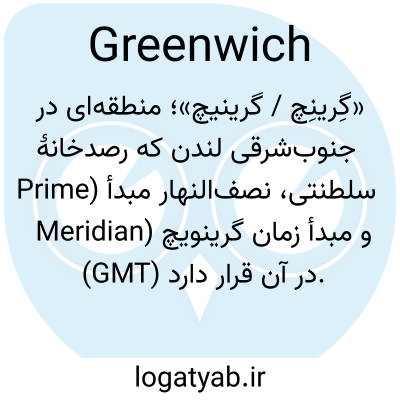 📌 منطقه‌ای در جنوب شرقی لندن، انگلستان: واقع در نصف‌النهار مبدأ که طول جغرافیایی از آن اندازه‌گیری می‌شود؛ سابقاً محل رصدخانه سلطنتی گرینویچ بوده است.