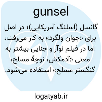واژهنامهها ریشه کلمه gunsel را از زبان عامیانه دنیای زیرین میدانند، یادآوری اینکه زبان قبل از اینکه در ادبیات جای بگیرد، مسیرهای عجیبی را طی میکند.