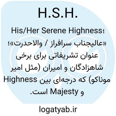 His/Her Serene Highness؛ «عالیجناب سرافراز / والاحدرت»؛ عنوان تشریفاتی برای برخی شاهزادگان و امیران (مثل امیر موناکو) که درجه‌ای بین Highness و Majesty است.
