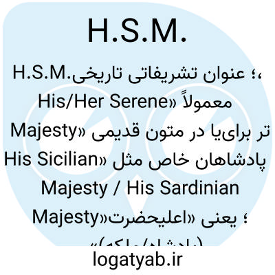 H.S.M.؛ عنوان تشریفاتی تاریخی، معمولاً «His/Her Serene Majesty» یا در متون قدیمی‌تر برای پادشاهان خاص مثل «His Sicilian Majesty / His Sardinian Majesty»؛ یعنی «اعلیحضرت (پادشاه/ملکه)» در قالب یک سبکِ خطاب خاص.