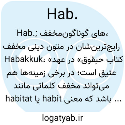 Hab.; مخفف‌های گوناگون، رایج‌ترین‌شان در متون دینی مخفف Habakkuk، «کتاب حبقوق» در عهد عتیق است؛ در برخی زمینه‌ها هم می‌تواند مخفف کلماتی مانند habitat یا habit باشد که معنی دقیق را باید از متن فهمید.