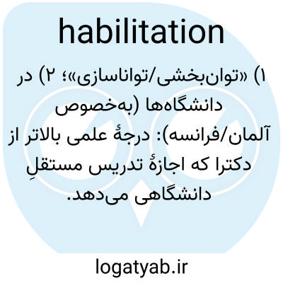 ۱) «توان‌بخشی/تواناسازی»؛ ۲) در دانشگاه‌ها (به‌خصوص آلمان/فرانسه): درجهٔ علمی بالاتر از دکترا که اجازهٔ تدریس مستقلِ دانشگاهی می‌دهد.