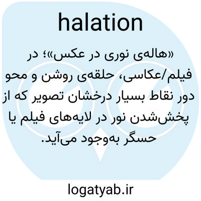«هاله‌ی نوری در عکس»؛ در فیلم/عکاسی، حلقه‌ی روشن و محو دور نقاط بسیار درخشان تصویر که از پخش‌شدن نور در لایه‌های فیلم یا حسگر به‌وجود می‌آید.