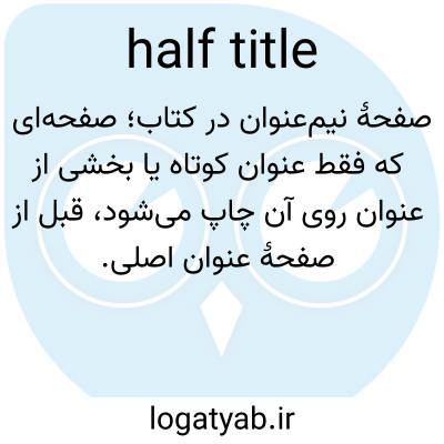 📌 عنوان هر بخش فرعی از یک کتاب، وقتی که به تنهایی روی یک صفحه کامل چاپ شده باشد.