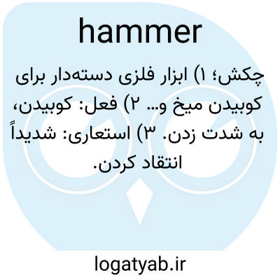 چکش؛ ۱) ابزار فلزی دسته‌دار برای کوبیدن میخ و… ۲) فعل: کوبیدن، به شدت زدن. ۳) استعاری: شدیداً انتقاد کردن.