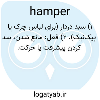 ۱) سبد دردار (برای لباس چرک یا پیک‌نیک). ۲) فعل: مانع شدن، سد کردن پیشرفت یا حرکت.