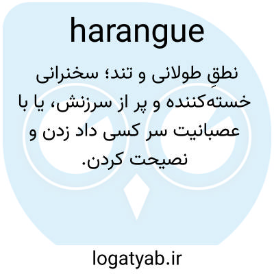 📌 سخنرانی طولانی، پرشور و تند، به ویژه سخنرانی که در مقابل یک اجتماع عمومی ایراد شود.