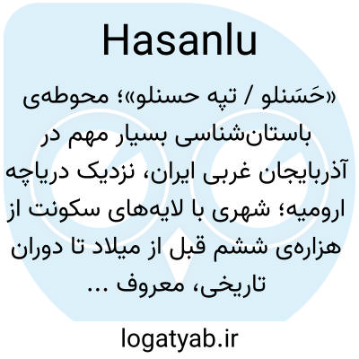 «حَسَنلو / تپه حسنلو»؛ محوطه‌ی باستان‌شناسی بسیار مهم در آذربایجان غربی ایران، نزدیک دریاچه ارومیه؛ شهری با لایه‌های سکونت از هزاره‌ی ششم قبل از میلاد تا دوران تاریخی، معروف به «کاسهٔ طلای حسنلو».