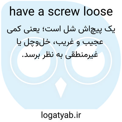 📌 از نظر ذهنی ناپایدار یا عجیب و غریب باشد، مانند «هر کسی که آن خرید را تأیید میکند، حتماً یک پیچش شل شده است». این اصطلاح، ضعف ذهنی را به ماشینی تشبیه میکند که در آن یک قطعه محکم بسته نشده است. متضاد آن «سر کسی را به سمت راست پیچ کردهاند» است؛ برای مثال، «او بسیار توانمند است؛ سرش به سمت راست پیچ خورده است». [اصطلاح عامیانه؛ اوایل دهه ۱۸۰۰]