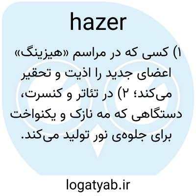 ۱) کسی که در مراسم «هیزینگ» اعضای جدید را اذیت و تحقیر می‌کند؛ ۲) در تئاتر و کنسرت، دستگاهی که مه نازک و یکنواخت برای جلوه‌ی نور تولید می‌کند.