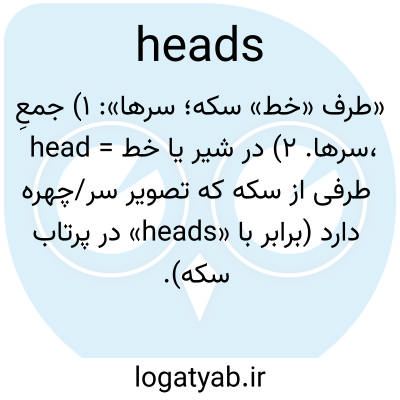 «طرف «خط» سکه؛ سرها»: ۱) جمعِ head = سرها. ۲) در شیر یا خط، طرفی از سکه که تصویر سر/چهره دارد (برابر با «heads» در پرتاب سکه).