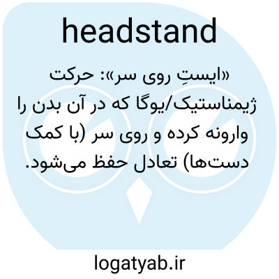 📌 عمل یا نمونهای از نگهداشتن بدن در حالت عمودی با حفظ تعادل روی سر، معمولاً با کمک دستها.