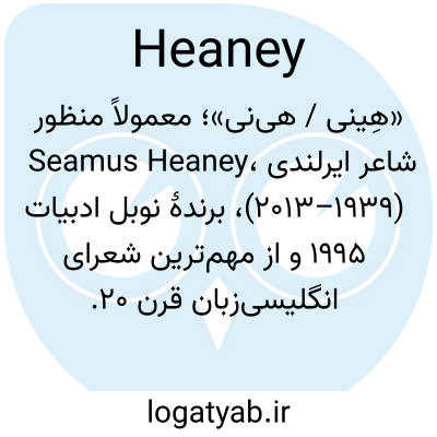 «هِینی / هی‌نی»؛ معمولاً منظور Seamus Heaney، شاعر ایرلندی (۱۹۳۹–۲۰۱۳)، برندهٔ نوبل ادبیات ۱۹۹۵ و از مهم‌ترین شعرای انگلیسی‌زبان قرن ۲۰.