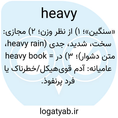 📌 شیمی، مربوط به یا مربوط به ایزوتوپی با وزن اتمی بیشتر از حد معمول، مانند هیدروژن سنگین یا اکسیژن سنگین، یا مربوط به ترکیبی حاوی چنین عنصری، مانند آب سنگین.