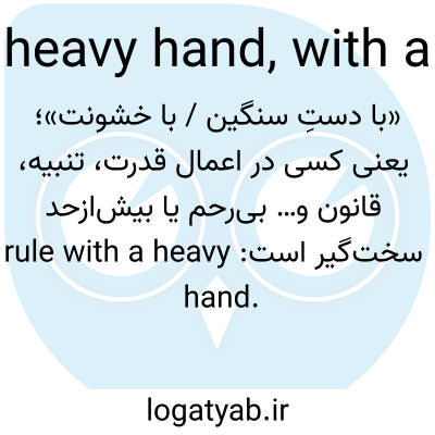 «با دستِ سنگین / با خشونت»؛ یعنی کسی در اعمال قدرت، تنبیه، قانون و… بی‌رحم یا بیش‌ازحد سخت‌گیر است: rule with a heavy hand.