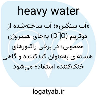 📌 آبی که در آن اتمهای هیدروژن با دوتریوم جایگزین شدهاند و عمدتاً به عنوان خنککننده در راکتورهای هستهای استفاده میشود.