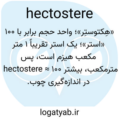 هکتواستر، hek′to-stēr، اسم. واحد اندازهگیری استحکام ۱۰۰ متر مکعب، ۳۵۳۱.۵۶ فوت مکعب انگلیسی.