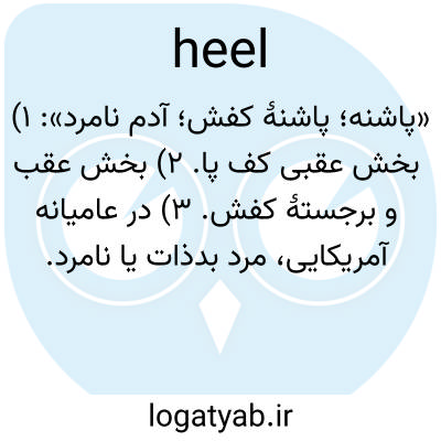 «پاشنه؛ پاشنهٔ کفش؛ آدم نامرد»: ۱) بخش عقبی کف پا. ۲) بخش عقب و برجستهٔ کفش. ۳) در عامیانه آمریکایی، مرد بدذات یا نامرد.