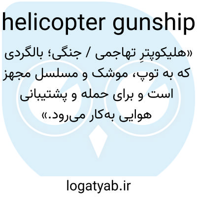 «هلیکوپترِ تهاجمی / جنگی؛ بالگردی که به توپ، موشک و مسلسل مجهز است و برای حمله و پشتیبانی هوایی به‌کار می‌رود.»