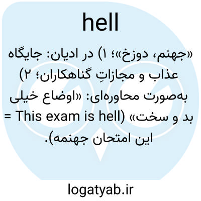 «جهنم، دوزخ»؛ ۱) در ادیان: جایگاه عذاب و مجازاتِ گناهکاران؛ ۲) به‌صورت محاوره‌ای: «اوضاع خیلی بد و سخت» (This exam is hell = این امتحان جهنمه).