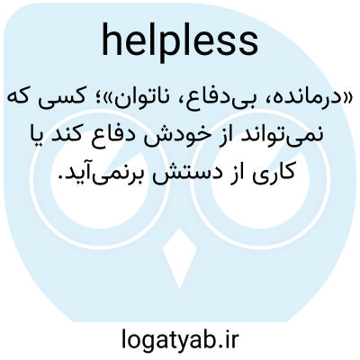«درمانده، بی‌دفاع، ناتوان»؛ کسی که نمی‌تواند از خودش دفاع کند یا کاری از دستش برنمی‌آید.