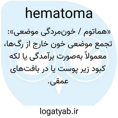 «هماتوم / خون‌مردگی موضعی»: تجمع موضعی خون خارج از رگ‌ها، معمولاً به‌صورت برآمدگی یا لکه کبود زیر پوست یا در بافت‌های عمقی.