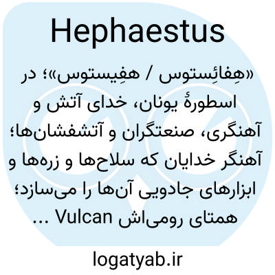 📌 خدای آتش، فلزکاری و صنایع دستی یونان باستان، که توسط رومیها با ولکان یکی دانسته میشود.