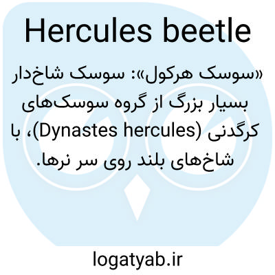 «سوسک هرکول»: سوسک شاخ‌دار بسیار بزرگ از گروه سوسک‌های کرگدنی (Dynastes hercules)، با شاخ‌های بلند روی سر نرها.