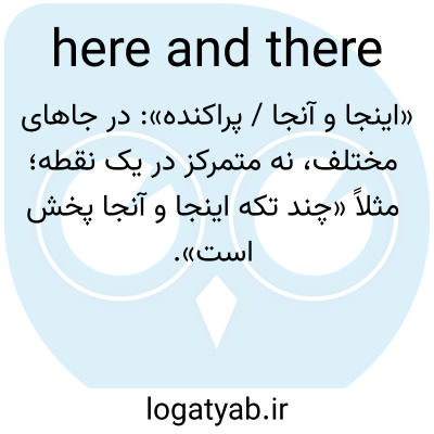 📌 در جهات مختلف، اینجا و آنجا، مانند «او چشمانش را به اینجا و آنجا چرخاند و در میان تماشاگران به دنبال او گشت.» [اواخر دهه ۱۲۰۰ میلادی] همچنین ببینید اینجا، آنجا و همه جا.