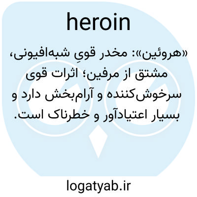 📌 پودری سفید، کریستالی و مخدر، C21 H23 NO5، مشتق شده از مورفین، که قبلاً به عنوان مسکن و آرامبخش استفاده میشد: تولید و واردات هروئین اکنون به دلیل خطر اعتیاد، تحت کنترل قانون فدرال در ایالات متحده است.
