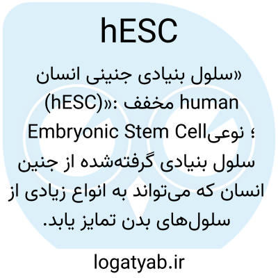 «سلول بنیادی جنینی انسان (hESC)»: مخفف human Embryonic Stem Cell؛ نوعی سلول بنیادی گرفته‌شده از جنین انسان که می‌تواند به انواع زیادی از سلول‌های بدن تمایز یابد.