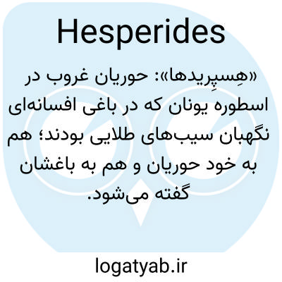📌 (با فعل جمع به کار میرود)، حوریان، که به تعداد مختلف از سه تا هفت نفر ذکر شدهاند، و به همراه اژدها لادون از سیبهای طلایی که هدیه عروسی گایا به هرا بود، محافظت میکردند.