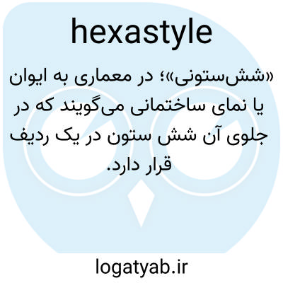 ششستونه، heks′a-stīl، صفت: دارای شش ستون، رواق یا معبدی که شش ستون در جلو دارد.