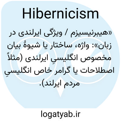 «هیبرنیسیزم / ویژگی ایرلندی در زبان»: واژه، ساختار یا شیوهٔ بیان مخصوص انگلیسیِ ایرلندی (مثلاً اصطلاحات یا گرامر خاص انگلیسیِ مردم ایرلند).